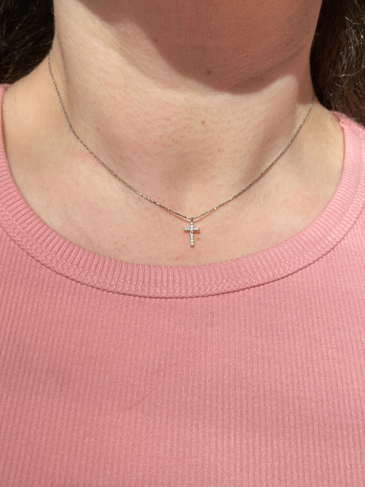 Original price $ 12.95 - Original price $ 12.95Original price$ 12.95$ 12.95 - $ 12.95Current price $ 12.95| /This simple classic necklace is a pave-set clear CZ cross on a serpentine cable chain. Choose from silver or gold plated. Adjustable length 15-17" ...