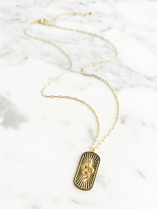 Original price $ 36.00 - Original price $ 36.00Original price$ 36.00$ 36.00 - $ 36.00Current price $ 36.00| /This necklace features a cartouche-style pendant embossed with an eye flanked by two crescent moons, each set with a clear CZ crystal. The backgrou...