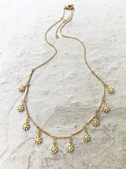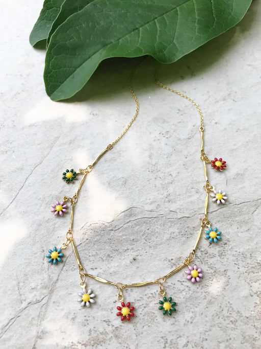 Original price $ 12.95 - Original price $ 12.95Original price$ 12.95$ 12.95 - $ 12.95Current price $ 12.95| /This fun choker necklace is perfect for summer with a row of beaded flowers with clear, blue, green and orange glass beads. Adjustable length 15-1...