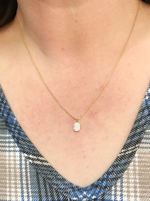 Original price $ 16.00 - Original price $ 16.00Original price$ 16.00$ 16.00 - $ 16.00Current price $ 16.00| /This necklace features a pendant of a cartouche filled with white mother of pearl and set in the center with a sleek golden cross. Gold plated pen...