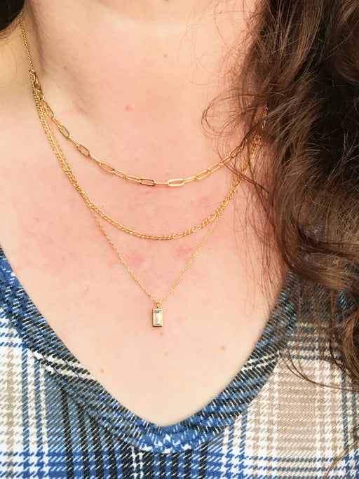 Original price $ 16.00 - Original price $ 16.00Original price$ 16.00$ 16.00 - $ 16.00Current price $ 16.00| /This stunning necklace has gold curb chain leading to a CZ baguette centerpiece bordered with smaller crystals. Classic & elegant! Gold plated....