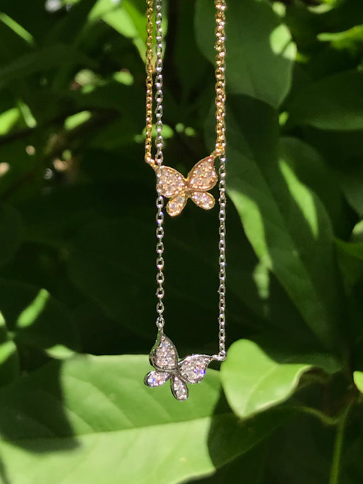 Original price $ 14.00 - Original price $ 14.00Original price$ 14.00$ 14.00 - $ 14.00Current price $ 14.00| /A butterfly charm is encrusted with sparkling cubic zirconia crystals with cable chain attached to each side. Choose from gold or white gold plated...
