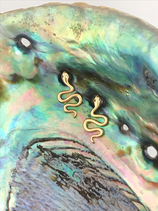 Original price $ 18.00 - Original price $ 18.00Original price$ 18.00$ 18.00 - $ 18.00Current price $ 18.00| /These slithering snake stud earrings are set with a teardrop of deep cognac Baltic amber with oxidized silver scale detail. Sterling silver & g...