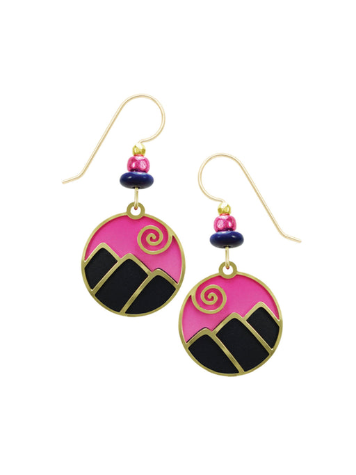 Original price $ 26.00 - Original price $ 26.00Original price$ 26.00$ 26.00 - $ 26.00Current price $ 26.00| /These earrings feature a metal disc with the image of three indigo mountains against a pink sky. A gold cutout piece lays over the top to provide d...