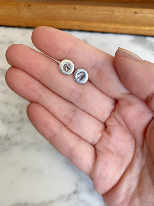 Original price $ 20.00 - Original price $ 20.00Original price$ 20.00$ 20.00 - $ 20.00Current price $ 20.00| /These stud earrings are a disc of silver stamped with a detailed leaf impression. This organic style is perfect for the nature lover. Soft matte fi...