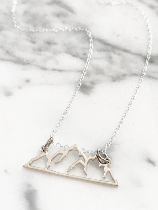 Original price $ 28.00 - Original price $ 28.00Original price$ 28.00$ 28.00 - $ 28.00Current price $ 28.00| /An outline of a mountain range is cast from bronze or sterling silver. The adjustable cable chain passes through two bails for a unique hanging sty...