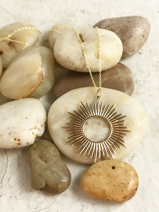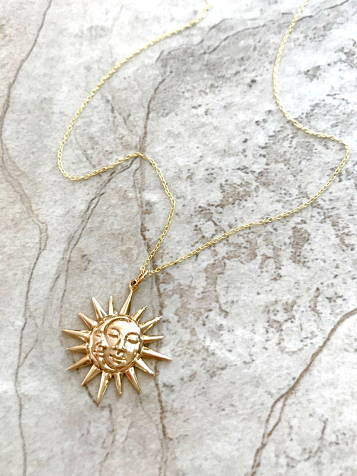 Original price $ 34.00 - Original price $ 34.00Original price$ 34.00$ 34.00 - $ 34.00Current price $ 34.00| /This necklace features a sun pendant with bursting golden rays. Hangs from an adjustable 16-18" 14kt gold vermeil (gold plated over sterling silver...