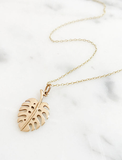 Original price $ 24.00 - Original price $ 24.00Original price$ 24.00$ 24.00 - $ 24.00Current price $ 24.00| /This earthy necklace features a pendant of shiny bronze tropical monstera leaf. Pendant is bronze and 3/4" long. Comes on a 16" gold vermeil chain...