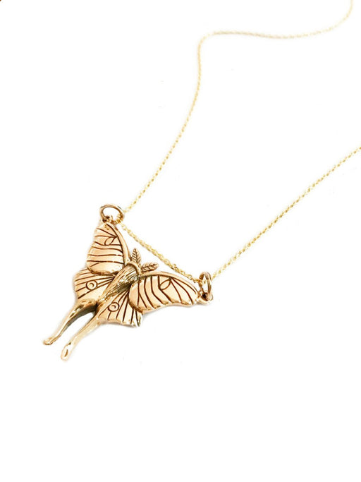 Original price $ 30.00 - Original price $ 30.00Original price$ 30.00$ 30.00 - $ 30.00Current price $ 30.00| /This necklace features a cast bronze pendant of a beautiful Luna moth. A gold vermeil cable chain passes through two bails on the edge of each wing...