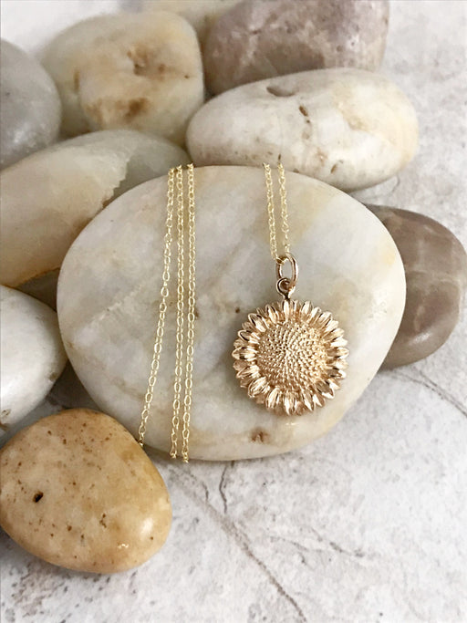 Original price $ 28.00 - Original price $ 28.00Original price$ 28.00$ 28.00 - $ 28.00Current price $ 28.00| /This summery necklace features a bronze sunflower pendant full of embossed realistic details. Bronze pendant, 14kt gold vermeil cable chain. Adjus...