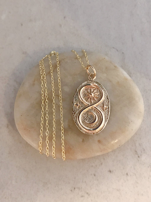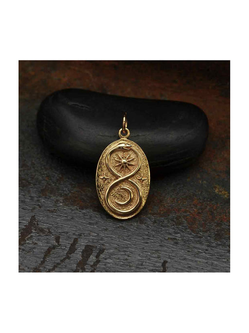 Original price $ 28.00 - Original price $ 28.00Original price$ 28.00$ 28.00 - $ 28.00Current price $ 28.00| /An ancient symbol of infinity, the ouroboros is a snake eating its tail. This oval pendant is embossed with a figure-8 shaped ouroboros with sun, c...