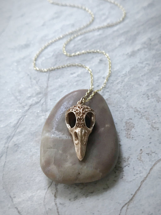 Original price $ 32.00 - Original price $ 32.00Original price$ 32.00$ 32.00 - $ 32.00Current price $ 32.00| /This necklace features a mysterious pendant of a cast raven skull with decorative scroll carvings. Ravens are full of symbolism and legend. Dependi...