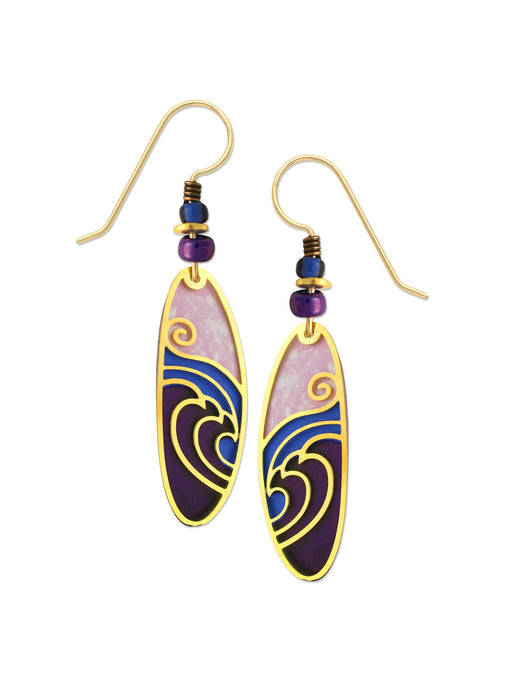 Original price $ 24.00 - Original price $ 24.00Original price$ 24.00$ 24.00 - $ 24.00Current price $ 24.00| /These stunning earrings feature an oval enameled in rich shades of purple and blue and overlaid with a gold cutout wave design. The 14kt gold fille...