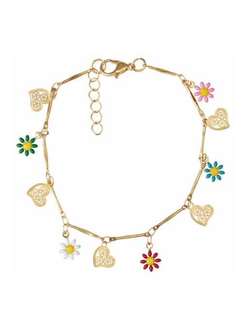 Original price $ 12.00 - Original price $ 12.00Original price$ 12.00$ 12.00 - $ 12.00Current price $ 12.00| /Bright garden blooms meet sweet heart charms in this delicate gold bracelet. A kaleidoscope of colorful enameled flowers and dainty filigree hearts...