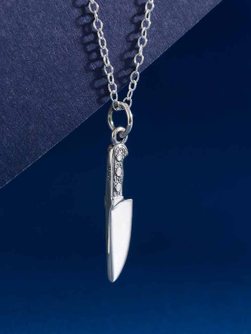 Original price $ 24.00 - Original price $ 24.00Original price$ 24.00$ 24.00 - $ 24.00Current price $ 24.00| /This edgy pendant necklace features a charm of a chef's knife, perfect for the foodie in your life! Shiny silver blade, and the handle has oxidized...