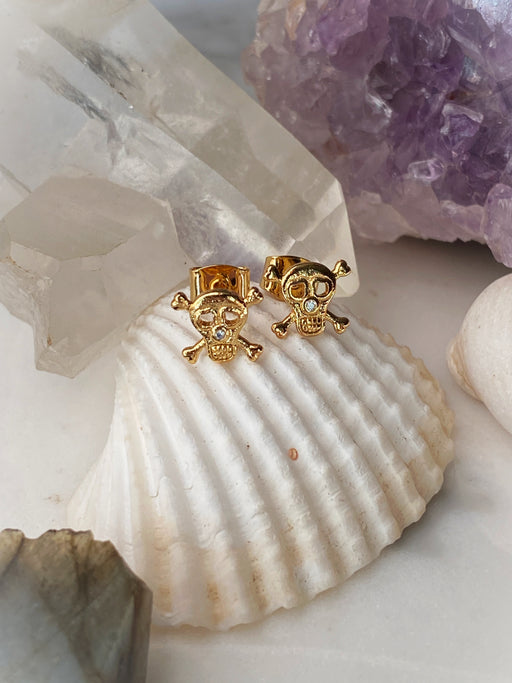 Original price $ 12.00 - Original price $ 12.00Original price$ 12.00$ 12.00 - $ 12.00Current price $ 12.00| /These stud earrings are skull and crossbones set with a clear CZ crystal in the nose area. Available in gold or white gold plated. Sterling silver ...