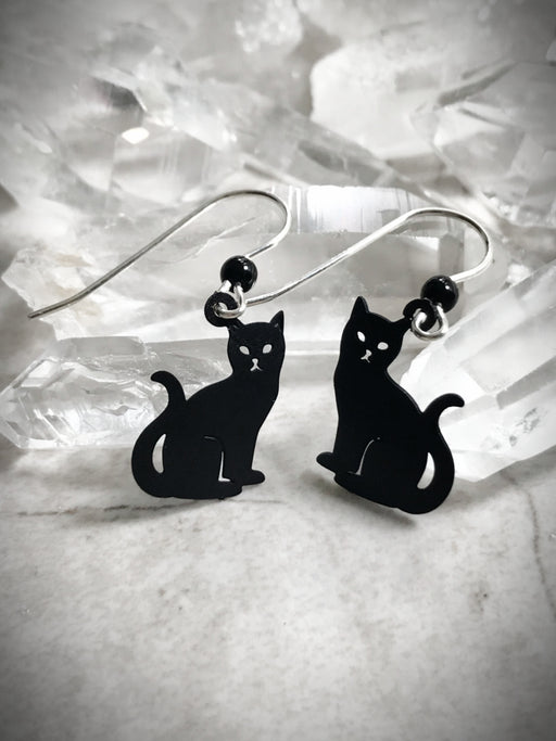 Original price $ 20.00 - Original price $ 20.00Original price$ 20.00$ 20.00 - $ 20.00Current price $ 20.00| /These sleek cat dangle earrings are silhouettes made of lightweight metal and bold black enamel with cutout details. Sterling silver ear wires have...