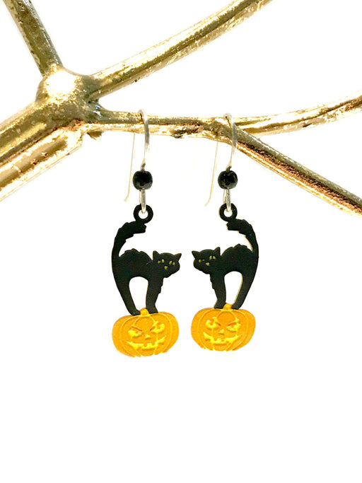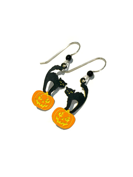 Original price $ 22.00 - Original price $ 22.00Original price$ 22.00$ 22.00 - $ 22.00Current price $ 22.00| /Arched-back black cats perch on smiling jack-o-lanterns in these festive earrings from Sienna Sky. Handmade in the USA using enamel and lightweight...
