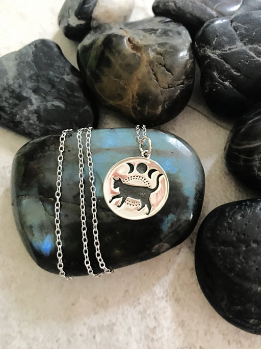 Original price $ 38.00 - Original price $ 38.00Original price$ 38.00$ 38.00 - $ 38.00Current price $ 38.00| /This necklace features a round medallion pendant embossed with a black cat silhouette with the phases of the moon above. Sterling silver pendant an...