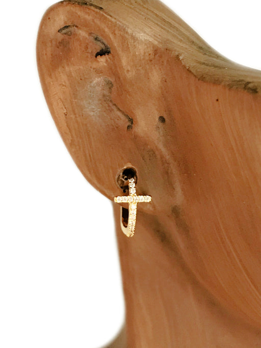 Original price $ 12.95 - Original price $ 12.95Original price$ 12.95$ 12.95 - $ 12.95Current price $ 12.95| /These statement hoop earrings are thick huggie hoops with a cascading dangle of three crosses attached to stele chain. Huggie hoops are hinged at t...