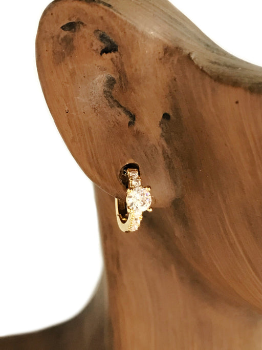 Original price $ 12.00 - Original price $ 12.00Original price$ 12.00$ 12.00 - $ 12.00Current price $ 12.00| /Versatile earrings have a small dangle of a clear crystal cz hanging from a gold plated pincatch hoop. Hoop is 1/2" plus 1/8" dangle.