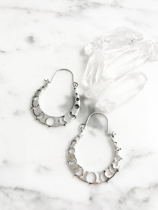 Original price $ 32.00 - Original price $ 32.00Original price$ 32.00$ 32.00 - $ 32.00Current price $ 32.00| /Inspired by the night sky, these hoop earrings are a crescent with the moon phases cut out. Matte finish gives off a soft glow. Easy hook and eye s...