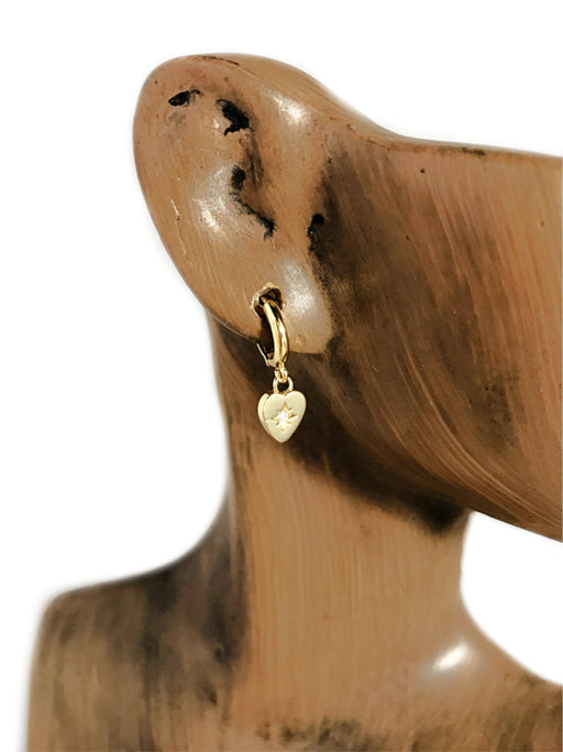 Original price $ 12.95 - Original price $ 12.95Original price$ 12.95$ 12.95 - $ 12.95Current price $ 12.95| /These adorable huggie hoops have a charm of a cut crystal heart bezel set in gold. Huggie hoops are hinged at the bottom and click to clasp. Gold ...