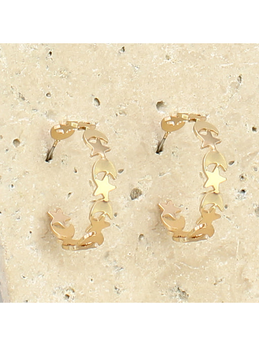 Original price $ 16.00 - Original price $ 16.00Original price$ 16.00$ 16.00 - $ 16.00Current price $ 16.00| /These wide gold hoops are embossed with engraved stars set with twinkling cubic zirconia crystals. Easy pincatch closures. Gold plated. 3/4" long a...