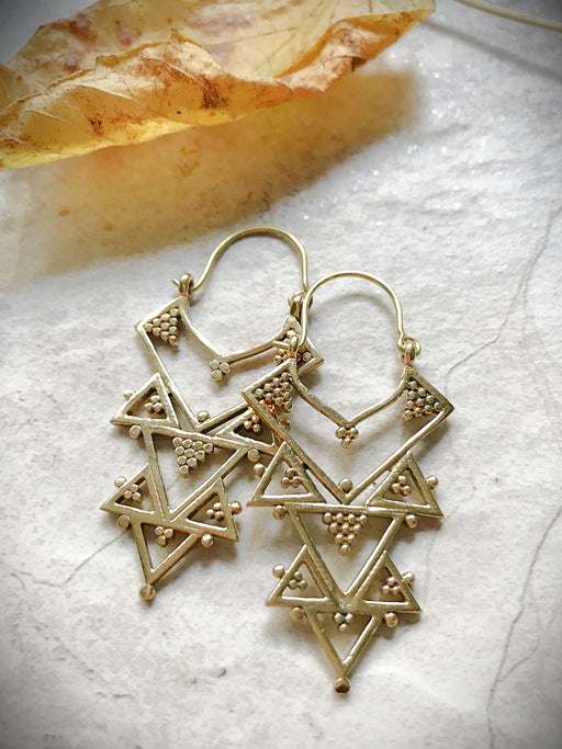 Original price $ 12.00 - Original price $ 12.00Original price$ 12.00$ 12.00 - $ 12.00Current price $ 12.00| /These unusual earrings are a curved wire with a gold triangle set with a clear CZ crystal at one end to be worn nestled against the ear with the wi...