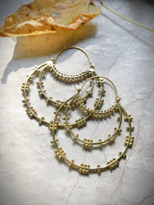 Original price $ 12.95 - Original price $ 12.95Original price$ 12.95$ 12.95 - $ 12.95Current price $ 12.95| /These whimsical earrings are large gold hammered hoops with three mushrooms sprouting from the inside of the hoop. Each mushroom is capped off in e...