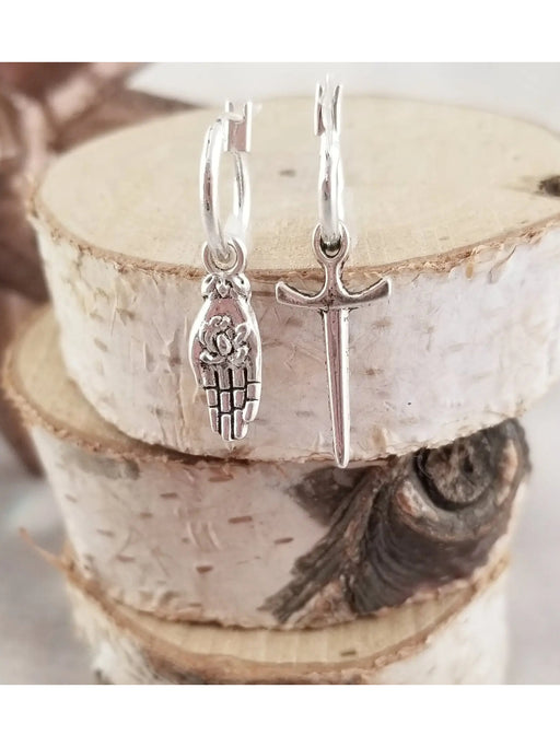 Original price $ 12.95 - Original price $ 12.95Original price$ 12.95$ 12.95 - $ 12.95Current price $ 12.95| /These petite huggie hoops have a small charm of a golden dagger, symbolizing valor & sacrifice. Huggie hoops are hinged at the bottom of the ea...