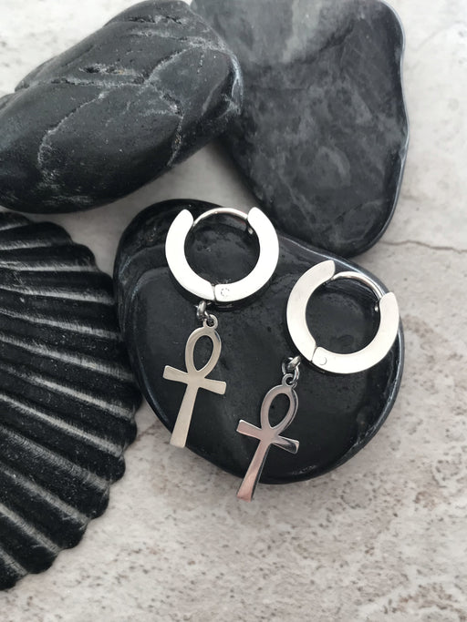Ankh Charm Huggie Hoops