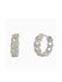 These on trend huggie hoops feature a row of chain link set with sparkling clear cubic zirconia crystals. Huggie hoops are hinged at the bottom and snap closed.