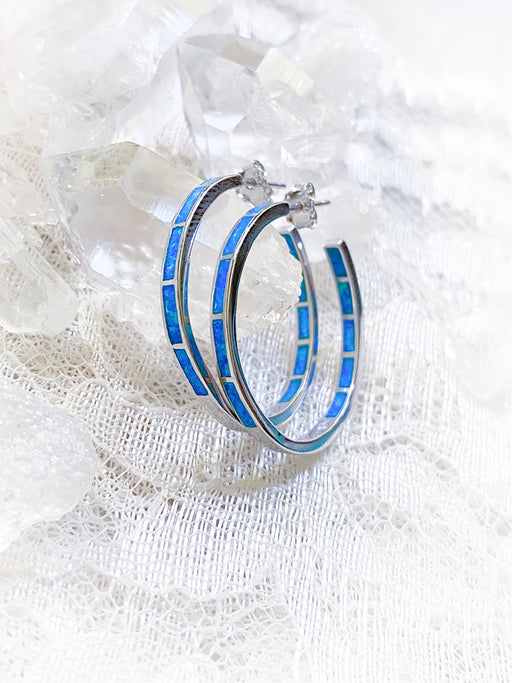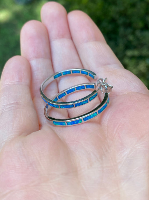 Original price $ 72.00 - Original price $ 72.00Original price$ 72.00$ 72.00 - $ 72.00Current price $ 72.00| /These stud earrings are hoops lined with rectangles of blue opal painstakingly shaped and inlaid along the front & inside of the hoop for maxim...