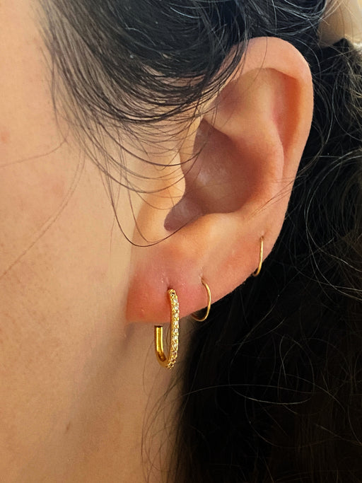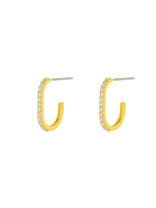 Original price $ 12.95 - Original price $ 12.95Original price$ 12.95$ 12.95 - $ 12.95Current price $ 12.95| /These J-shaped hoop earrings are lined with a row of tiny sparkling clear CZ crystals. Post closure. Gold Plated. 5/8" (1.5cm) long