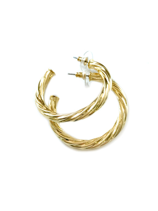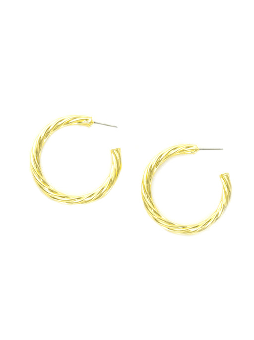 Original price $ 12.95 - Original price $ 12.95Original price$ 12.95$ 12.95 - $ 12.95Current price $ 12.95| /These stud earrings are a chunky hoop with a twist pattern for classy vintage flair. Gold plated. 7/8" diameter.