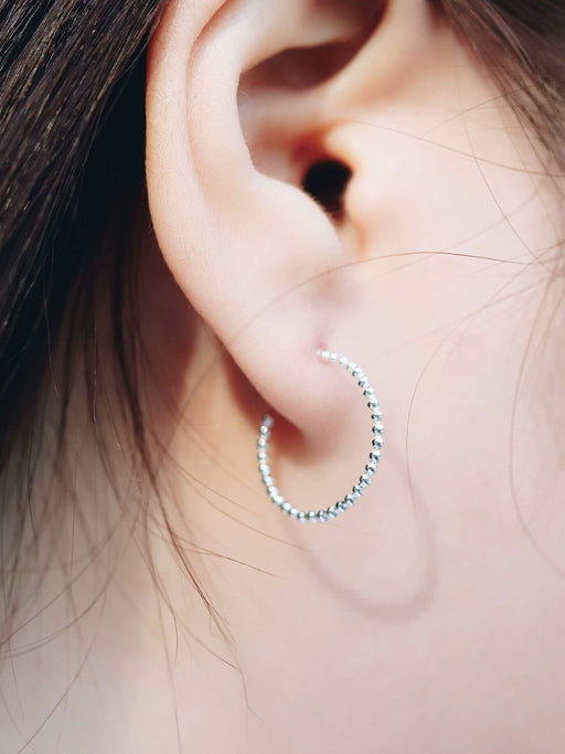 Original price $ 12.00 - Original price $ 12.00Original price$ 12.00$ 12.00 - $ 12.00Current price $ 12.00| /Simple hoop earrings are a curved row of ball beading. Post closure with butterfly backs. 100% recycled sterling silver. 1/2" diameter. Pairs beaut...