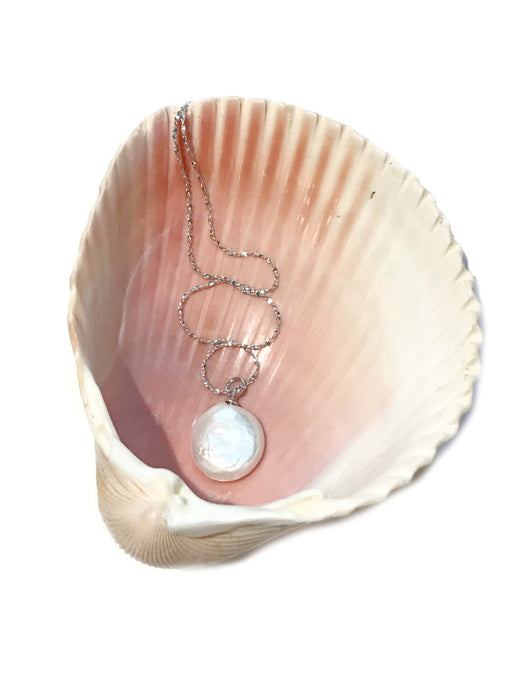 Original price $ 22.00 - Original price $ 22.00Original price$ 22.00$ 22.00 - $ 22.00Current price $ 22.00| /This elegant necklace features a large coin pearl pendant on a light cable chain. Coin pearls are flattened freshwater pearls that reflect soft iri...