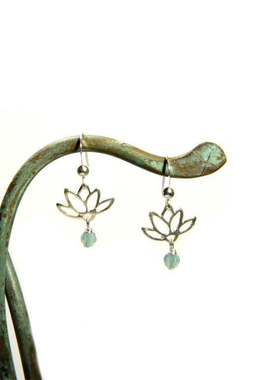 Original price $ 22.00 - Original price $ 22.00Original price$ 22.00$ 22.00 - $ 22.00Current price $ 22.00| /These dangle earrings feature an airy open petal of sterling silver with a dangling bead drop. Swarovski crystals and beads. Available in blue crys...