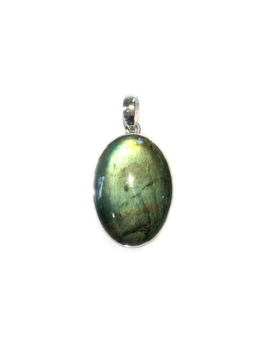 Original price $ 48.00 - Original price $ 48.00Original price$ 48.00$ 48.00 - $ 48.00Current price $ 48.00| /This special pendant is an oval cabochon of labradorite carves with a flower outline design. A rainbow of blue, green, gold and pink flashes are un...