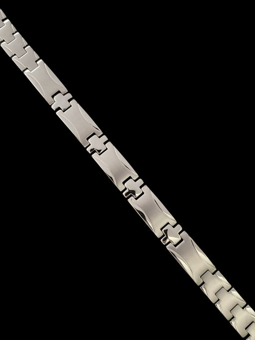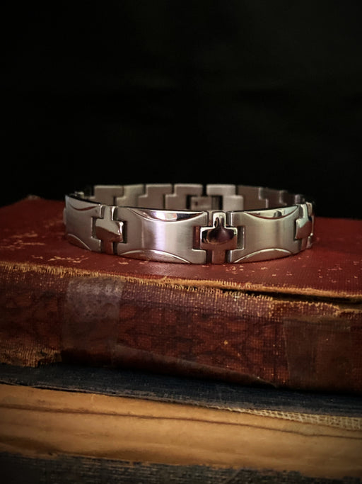 Original price $ 38.00 - Original price $ 38.00Original price$ 38.00$ 38.00 - $ 38.00Current price $ 38.00| /This handsome bracelet features chunky links of brushed stainless steel, with smaller cross-shaped shiny links in between. The bracelet is lined wi...
