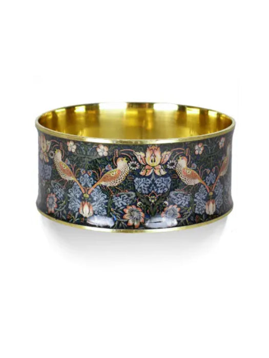 Strawberry Thief: England ca. 1883. British textile designer, writer and artist William Morris(1834-1896) created patterns for textiles, wallpapers, and tapestries, which were released through Morris & co. This bracelet is inspired by his strawberry thief pattern which was a block print on cotton.