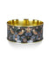 Gold plated brass and epoxy. To extend the life of your bangle, refrain from showering while wearing these pieces.
