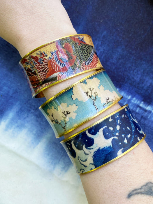 These 1 1/4" wide bangle bracelets are inspired by famous works of art and antiquities. Available in seven styles: