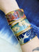 Tiffany Rose Window: Louis Comfort Tiffany (1848-1933) was a trailblazer in decorative arts using stained glass during the Art Nouveau period. This bracelet features a detail of one of his famous leaded glass rose windows.