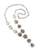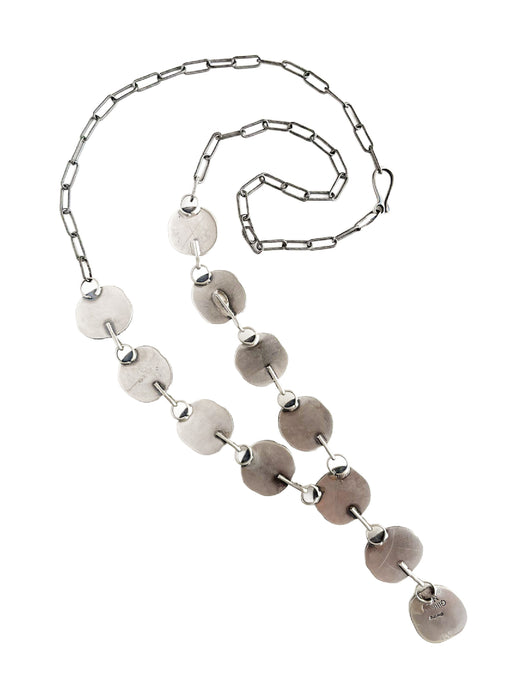 Length is approx. 28" long. The centerpiece drops approx. 3". A sturdy box link chain and hook clasp finish the piece.