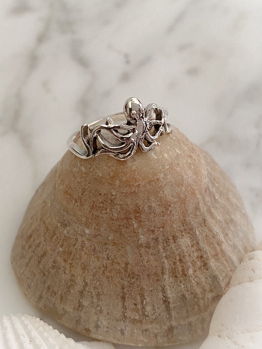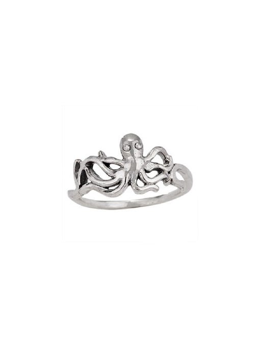 Original price $ 28.00 - Original price $ 28.00Original price$ 28.00$ 28.00 - $ 28.00Current price $ 28.00| /This fun ring has an octopus with swirling tentacles. Available in whole sizes 6-9. Sterling silver. 3/8" across widest point.