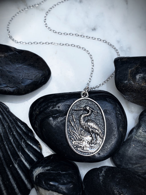 Original price $ 58.00 - Original price $ 58.00Original price$ 58.00$ 58.00 - $ 58.00Current price $ 58.00| /This embossed medallion necklace features a graceful heron in a pond lined with grasses and cattails; transporting us to a watery realm where we co...