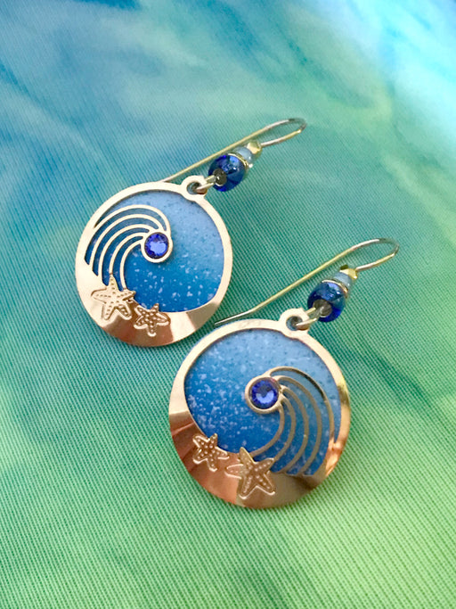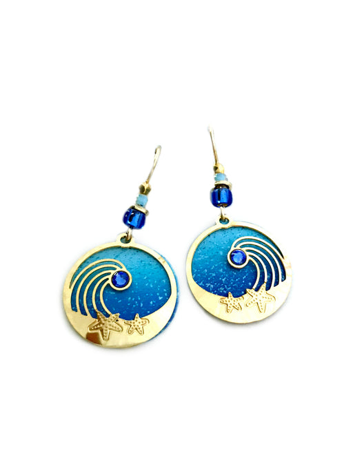 Original price $ 26.00 - Original price $ 26.00Original price$ 26.00$ 26.00 - $ 26.00Current price $ 26.00| /These beach-inspired earrings feature a gold overlay with a curling wave cutout and embossed starfish on top of a deep blue ombre enamel background...