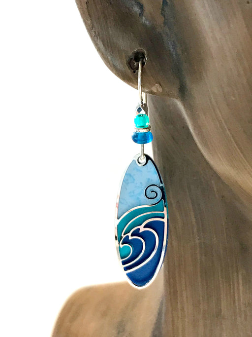 Original price $ 24.00 - Original price $ 24.00Original price$ 24.00$ 24.00 - $ 24.00Current price $ 24.00| /These beautifully beachy earrings have two layers: an ocean blue enamel background with a cutout silver wave layered on top. Sterling silver ear w...